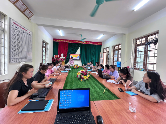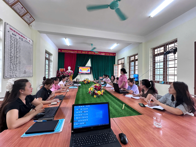 Buổi tập huấn do đồng chí Hoàng Thị Hiển- TTCM (Tham gia lớp tập huấn tại Tỉnh) chủ trì, với sự tham gia của các đồng chí trong Ban giám hiệu và toàn thể giáo viên. Nội dung tập huấn tập trung vào việc: